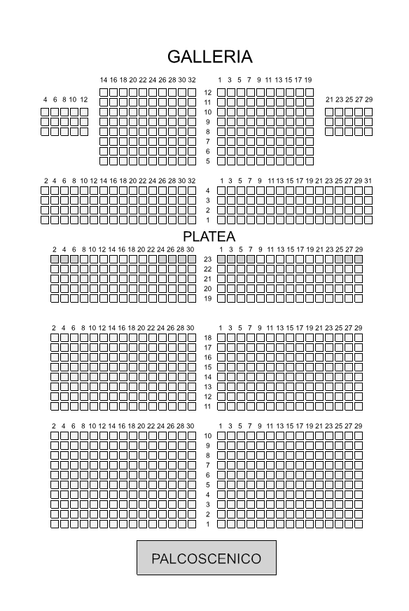 | galleria Posti numerati | I1 Intero 22,00 € R7 Ridotto Ridotto 20,00 € RA Ridotto Biglietto futuro under 30 - obbligatorio esibire doc. identità 8,00 € | 169 | |